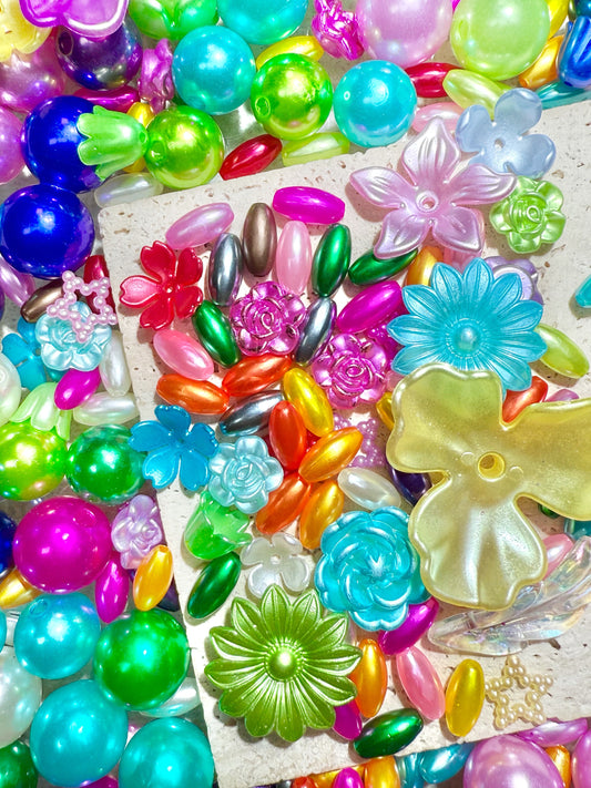 【B1G1 Floral Bubble】colorful acrylics beads and flowers mix, 12-14-16mm (making wreath, keychain, pens)