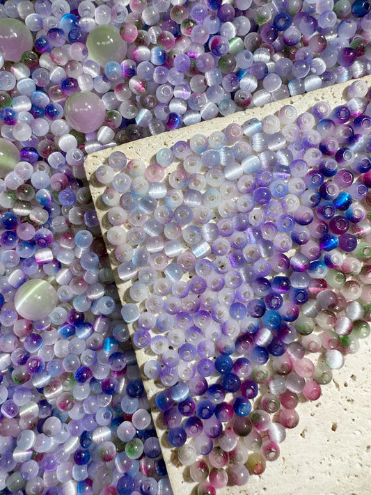 【Mini Cat's Eye 1】4mm glass cats-eye round seed beads mix, earring, bracelet, necklace, keychain